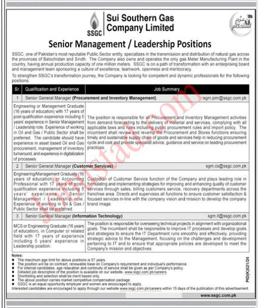 SSGC Jobs 2025 has been announced through the advertisement and applications from the suitable persons are invited on the prescribed application form. In these Latest Sui Southern Gas Company Limited Jobs the eligible Male/Female candidates from across the country can apply through the procedure defined by the organization and can get these Today Jobs in Pakistan after the complete recruitment process.