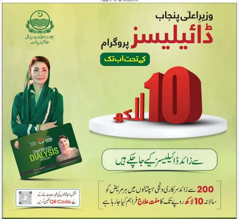CM Punjab Dialysis Program Updates December 2025 Advertisement