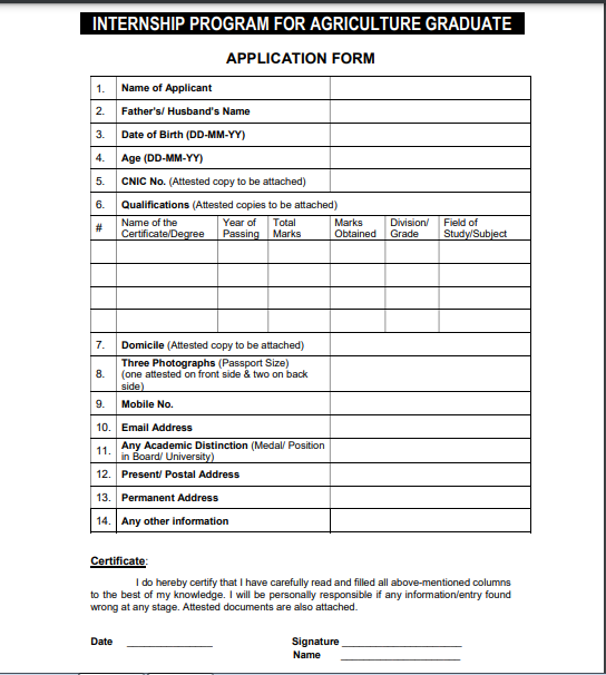 Program Name | CM Punjab Internship Program for Agricultural Graduates |
