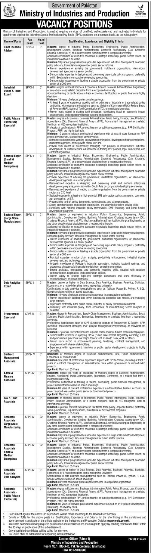 Interested and eligible candidates should apply strictly according to the instructions provided in the official advertisement issued by the Ministry of Industries & Production. Applicants must ensure that all required documents, qualifications, and experience details are complete and accurate before submission.