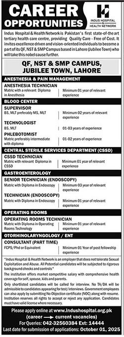 The latest Indus Hospital Jobs in Lahore September 2025 Advertisement has been announced, inviting passionate and skilled professionals to join the Indus Hospital & Health Network at its QF, NST & SMP Campus, Jubilee Town, Lahore. As Pakistan’s first state-of-the-art tertiary healthcare center providing quality care free of cost, Indus Hospital seeks excellence-driven and vision-oriented individuals to contribute to its noble mission. With multiple vacancies across medical, technical, and supervisory roles, this is a unique opportunity to serve humanity while building a rewarding healthcare career.