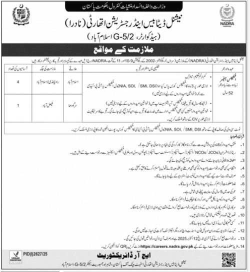 Intelligence Officer Jobs in NADRA September 2025 Advertisement
