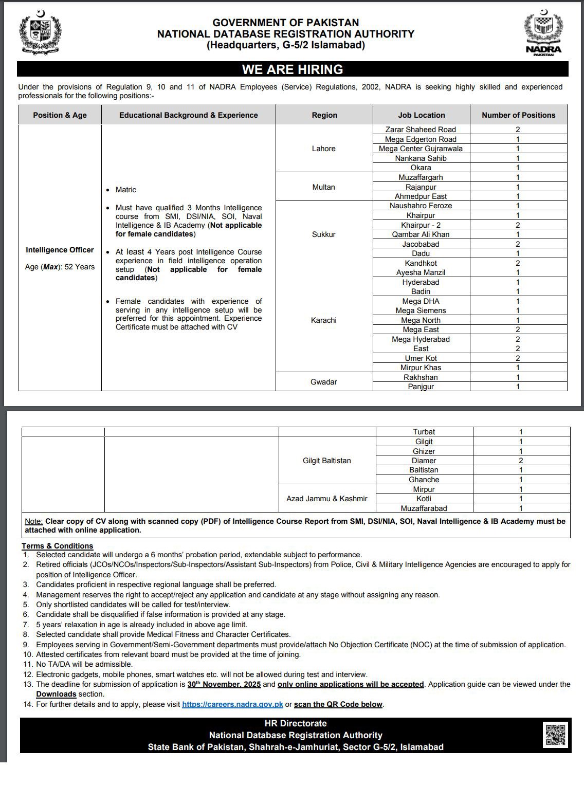 - Apply online through careers.nadra.gov.pk or via the provided QR Code.