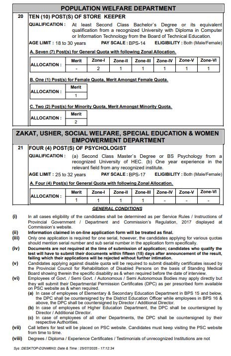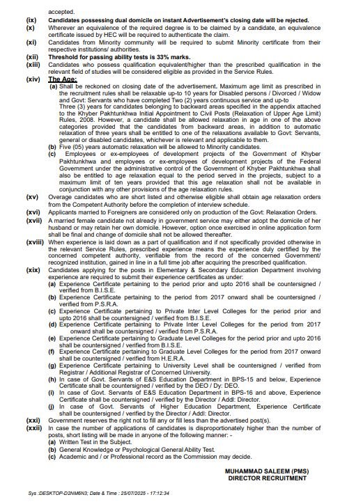 Eligibility of candidates will be determined according to Service Rules, Provincial Government instructions, and KPPSC Regulations 2017 displayed on the Commission’s website.