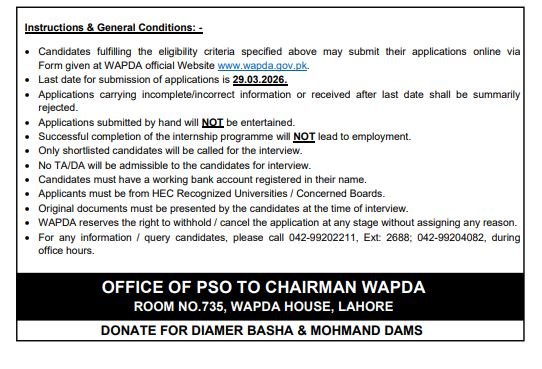 - Completion of the internship does not guarantee employment in WAPDA.