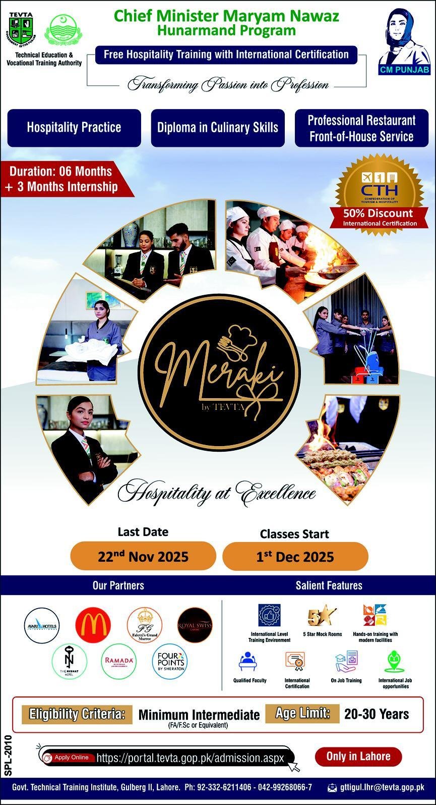 Program NameCM Punjab Hunarmand Program 2025 – Free Hospitality Training