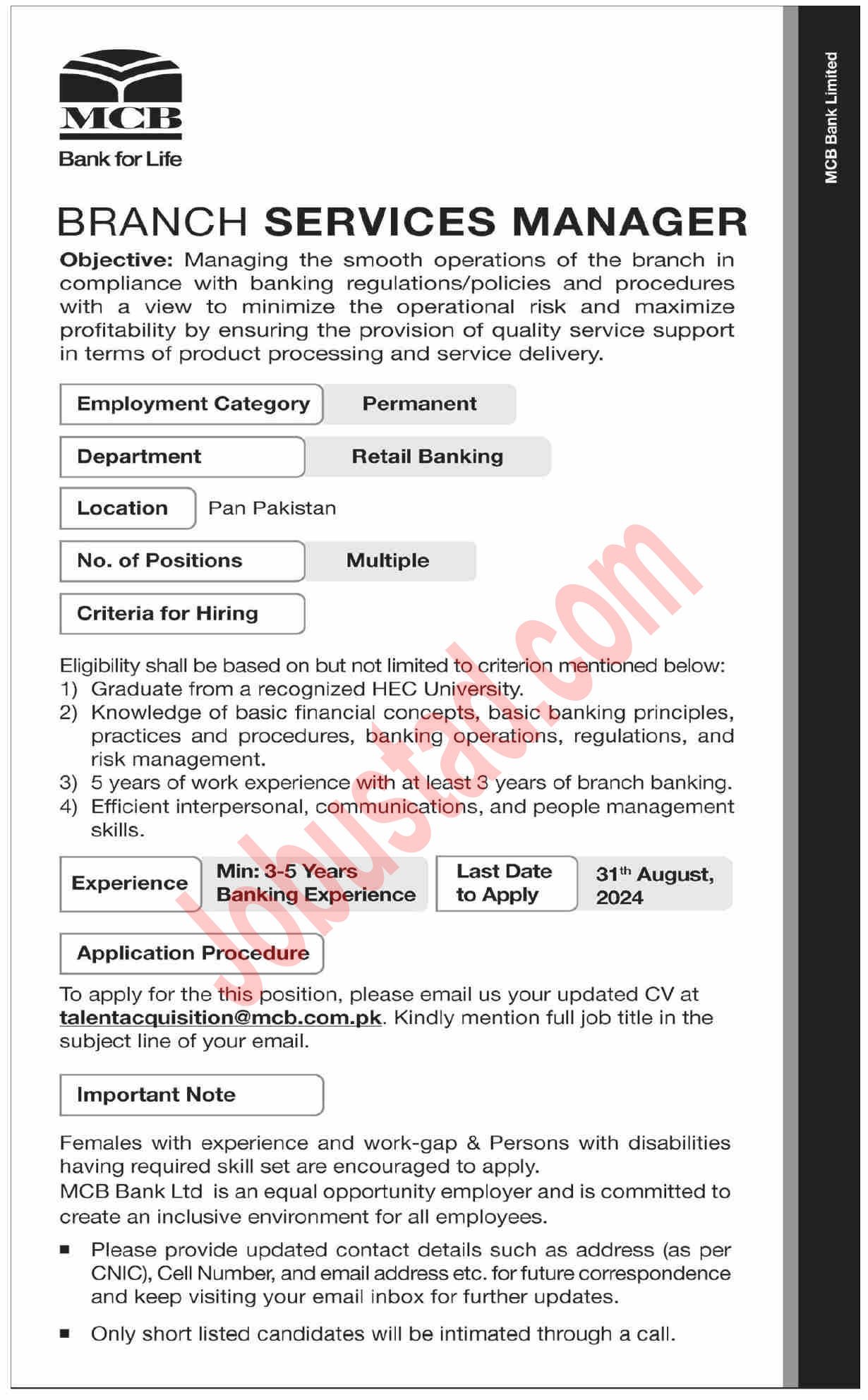Muslim Commercial Bank counts in largest banks of Pakistan which wants to recruit qualified and experienced candidates for MCB Bank Jobs 2024 In these Banking Jobs Today, male/female candidates from across the country who fulfill the criteria can apply and can get these Private Sector Jobs.