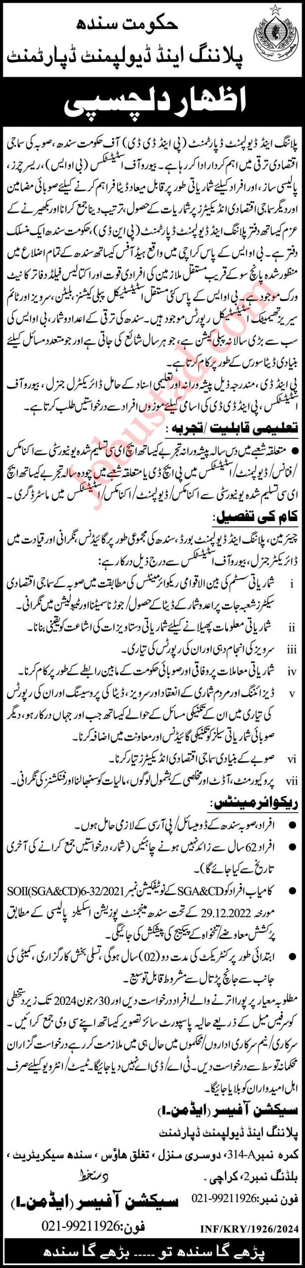 New Sindh Planning and Development Department Jobs in Karachi June 2024 Advertisement