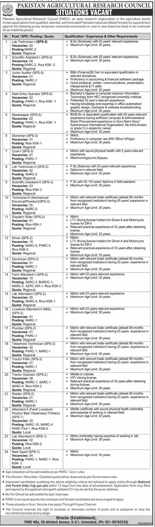 - Interested candidates should apply as per official PARC guidelines (details available in the official advertisement and website).
