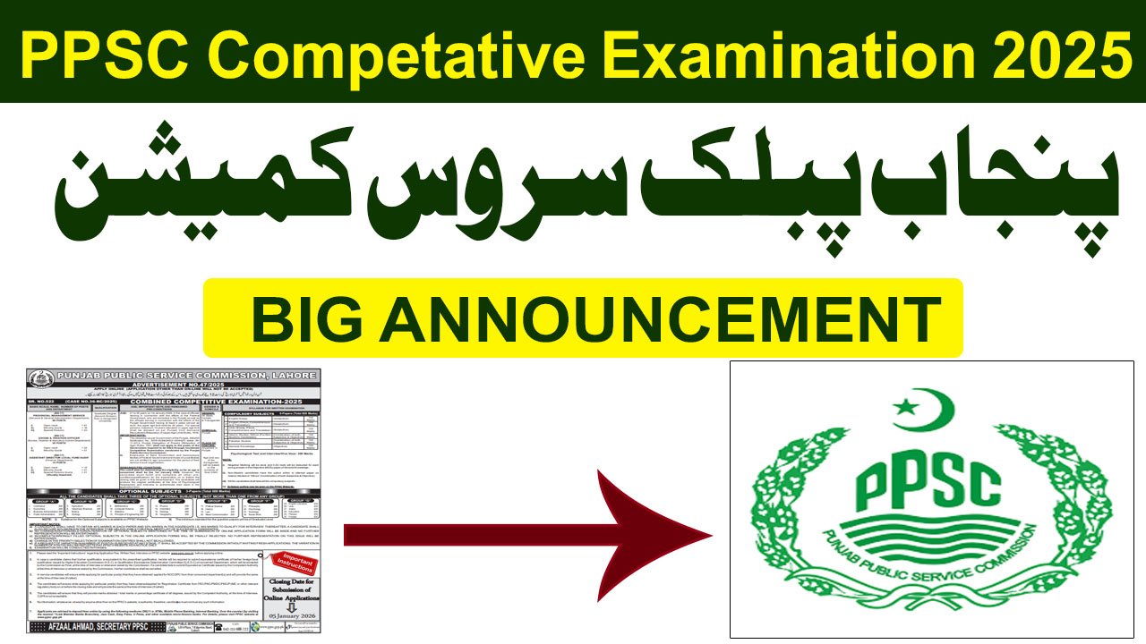 The Punjab Public Service Commission (PPSC) has officially announced the Combined Competitive Examination (CCE) 2025 through Advertisement No. 47/2025, published in newspapers on 14 December 2025. This prestigious competitive examination offers a direct opportunity for graduates domiciled in Punjab to secure BS-17 officer-level positions in key provincial departments, including Provincial Management Service (PMS), Excise & Taxation, and Local Fund Audit. With a transparent selection process, province-wide postings, and equal opportunities for male, female, and transgender candidates, the PPSC Combined Competative Examination 2025 Registration Open notice is a major career milestone for aspiring civil servants seeking authority, stability, and long-term growth in public service.