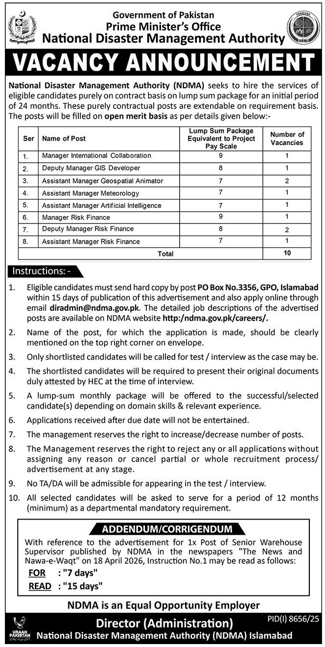 👉 http://ndma.gov.pk/careers/ - Submit your application within 15 days of advertisement publication.
