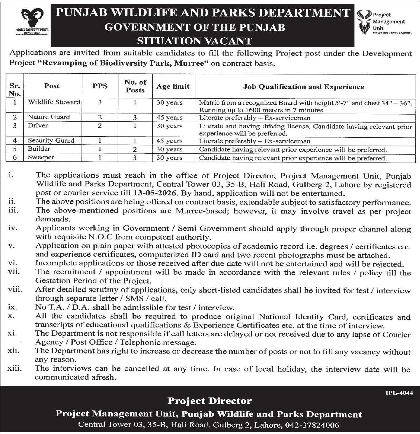 Punjab Wildlife and Parks Department Jobs in Punjab May 2026 Apply Online