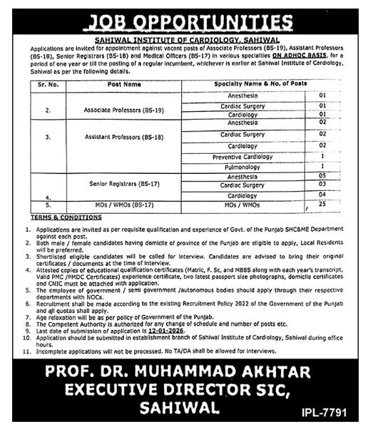 | Hiring Organization | Sahiwal Institute of Cardiology (SIC) |