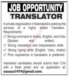 Translator Jobs in Islamabad March 2025 has been announce through Latest advertisement a Private Organization in Islamabad is seeking the Services of a Highly Skilled Translator .Details and requirement about post are Mention Below.In these Latest Private Jobs in Islamabad both Male and Female candidates can Apply in these Jobs and can get these Latest Jobs in Pakistan 2025 after Completion of Jobs Procedure.