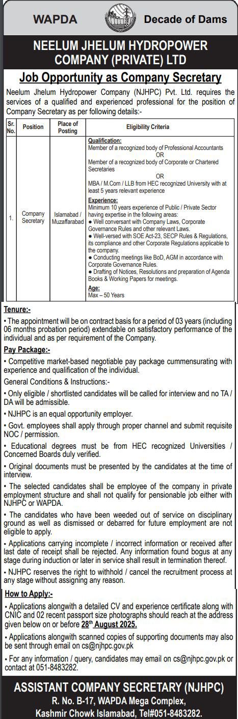 How to Apply for Water and Power Development Authority Jobs 2025?